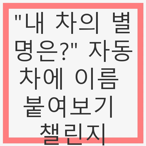이 챌린지를 통해 여러분은 자동차에 대한 애정과 창의력을 발휘하며, 새로운 경험을 쌓아갈 수 있습니다. 이제 여러분의 차의 별명을 생각해보세요. 그 이름이 여러분에게 어떤 의미를 지닐지 기대해봅니다.