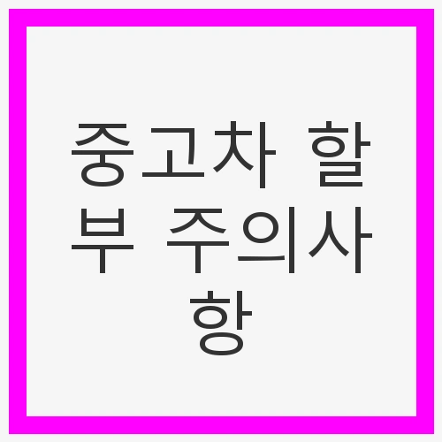 중고차 할부는 많은 소비자에게 실질적인 혜택을 제공합니다. 하지만 이러한 구매 방식은 다양한 주의사항이 따르므로, 신중하게 접근해야 합니다. 신용점수 관리, 소득 증빙, 초기 자금 준비, 차량 상태 점검, 허위매물 주의 등 모든 과정을 충분히 이해하고 준비한다면, 중고차 구매는 안전하고 만족스러운 경험이 될 것입니다.